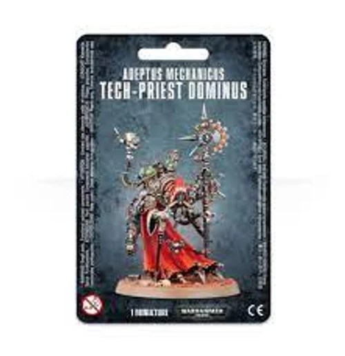 The masters of the Cult Mechanicus, the Tech-Priests Dominus have a prodigious talent and hunger for war. Their minds are filled by a constant stream of information – bullet trajectories, optimal artillery arcs, las-pack capacities – and they leverage this information to visit destruction upon the enemy with every command issued from their cybernetically-enhanced forms. This miniature cuts an imposing figure, augmented to the point of being almost entirely cybernetic. His insectile metal legs and various extra arms lend him an air of alienation, and his two interchangeable heads mean he can be customised to fit both Cult Mechanicus and Skitarii images. He features an impressive array of weapons; included is a volkite blaster, a macrostubber, an eradication ray, a phosphor serpenta and a power axe – this is his badge of office, and is detailed with a microphone and loudspeaker. This multi-part, twenty component plastic kit contains everything needed to make one Tech-Priest Dominus, and is supplied with one Citadel 50mm Round Base. WARHAMMER 40000: Adeptus Mechanicus Techpriest Dominus comes in a plastic clam. Miniatures are supplied unpainted and assembly. may be required.