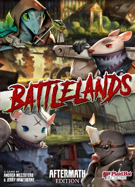 Set in the world of the upcoming Adventure Book game Aftermath, BattleLands: Aftermath Edition takes place in a post-apocalyptic land in which humans are extinct. Now the animals of the world try to survive by competing for territory, food, and precious technology.