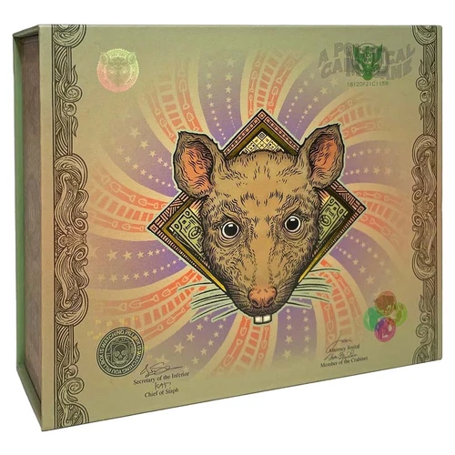 Peppered in the deck are RAT cards, which give you strong advantages. However, every time you play a RAT card, you must also draw a Scandal card, which contains a punishment. This punishment is not enacted immediately — rather, it sits face down in front of you until someone plays a DIG card on you. The DIG card will force you to turn over a scandal and abide by the punishment. Do you risk a scandal, or do you play it safe? The choice is yours in this dirty game of American elections.