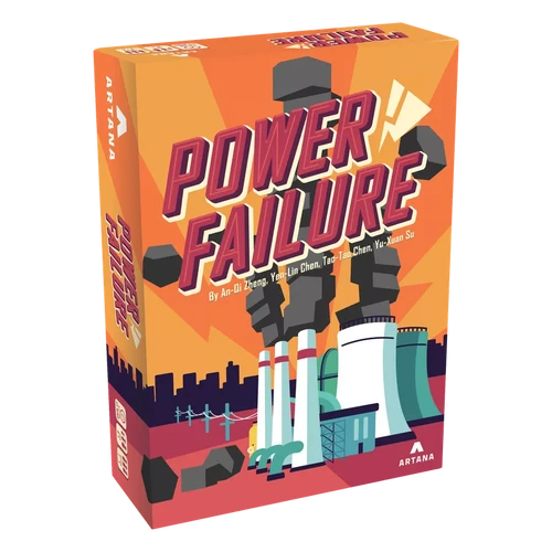 Power Failure is a tableau-building, dexterity game of energy production. Players take 3 actions on their turns to build and use different kinds of power plants. Depending on their actions and the type of plants they operate, they’ll be forced to stack blocks on the Carbon Tower, risking consequences for everyone when the tower falls. Players must manage risk while racing to complete energy contracts.