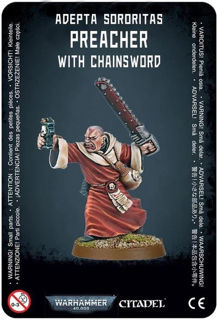 This pack contains one Preacher with Chainsword – a finely detailed metal miniature that comes in one component, and is supplied with a 25mm round base.
