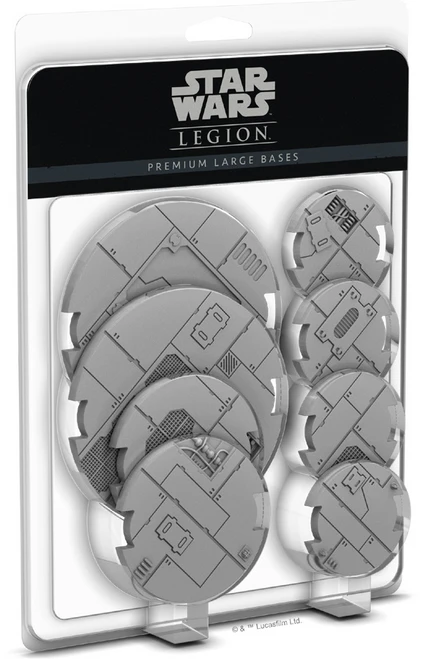Whether you prefer to command legions of Stormtroopers in the name of the Empire or lead elite Rebel strike teams, the premium bases included in these packs upgrade the look of your army and invite you to further immerse yourself in your Star Wars: Legion battles. Each pack of Premium Large Bases helps you update your army`s vehicles by covering all three sizes of notched bases. Each of these packs contains eight premium notched bases, enough to upgrade two AT-ST or T-47 Airspeeder units, two AT-RTs, and four 74-Z Speeder Bikes. In addition to allowing easy movement of your units, each of these premium bases features its own texture, announcing the uniqueness of your army.
