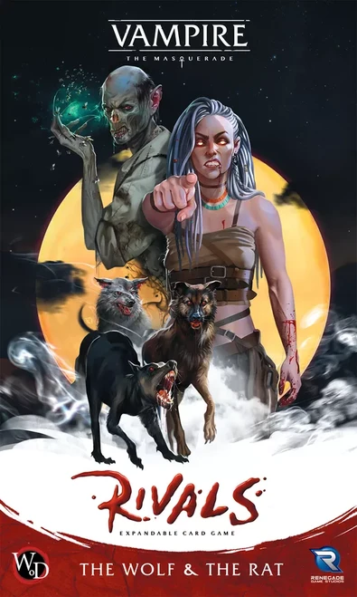 The Wolf & The Rat is an expansion for Vampire: The Masquerade Rivals that adds two new clans: GANGREL & NOSFERATU. Connected through animalism, but divided by opposing loyalties, the Gangrel and Nosferatu provide ample opportunity to unleash the beast within and explore the more feral side of their clan’s animal nature. You may play these two clans head-to-head with the pre-constructed decks provided, or integrate them with your Core Set and other expansions to create unique strategies for conquering your foes!